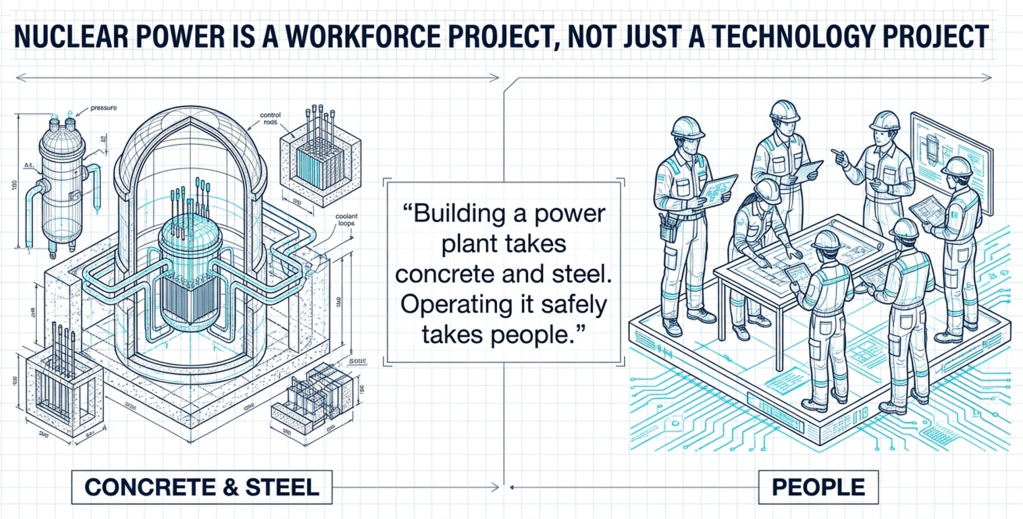 Without capable personnel, even the most advanced technology cannot guarantee safe and reliable operation. This principle is captured clearly in a well-known expression within the nuclear community: “Building a nuclear plant takes concrete. Operating it safely takes people.”