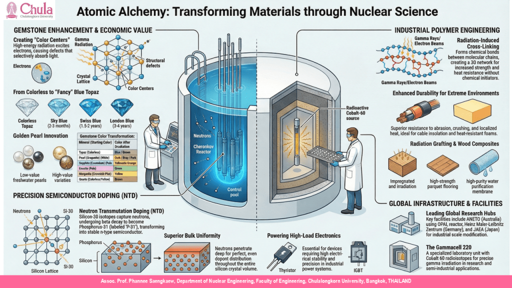 กรณีศึกษาทั้งสองนี้สะท้อนให้เห็นถึงวิวัฒนาการของการใช้รังสี จากการ “ปรับปรุงสมบัติของวัสดุ” ไปสู่การ “สร้างโครงสร้างและฟังก์ชันใหม่” ในระดับพื้นฐานที่สุดของสสาร